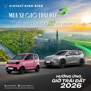 VINFAST NINH BÌNH HƯỞNG ỨNG GIỜ TRÁI ĐẤT – ƯU ĐÃI LÊN TỚI 20 TRIỆU Hưởng ứng chiến dịch toàn cầu Giờ Trái Đất, VinFast Ninh Bình chính thức triển khai chương trình ưu đãi đặc biệt dành cho khách